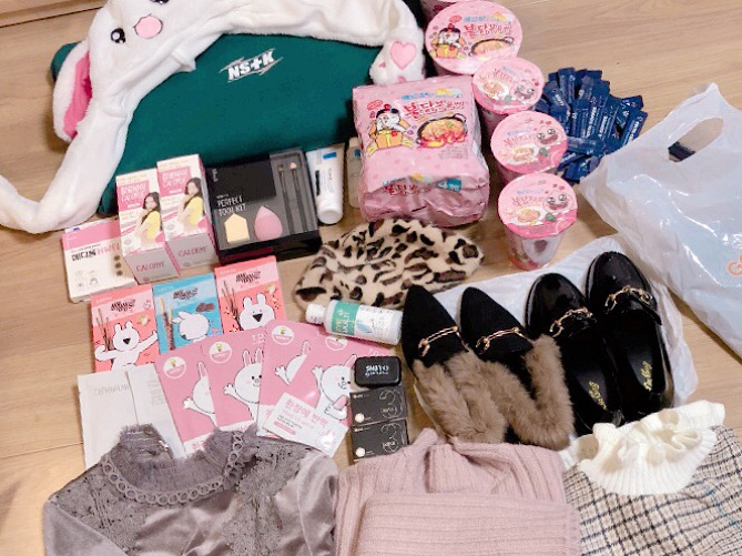 韓国女子旅 ドーンと韓国コスメのお土産を3名様に山分け プレゼント 女子プロ ハート研究所